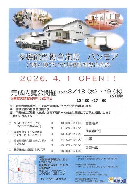令和8年4月1日に熊取町で開設する多機能型複合施設パンモアはグランドオープンに向けて着々と準備が進んでいます。