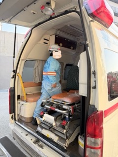 防災学習として年2回お世話になっているのですが、消防士さんによる防災講義や消火体験、地震体験、煙、暗闇避難訓練等を通して学ぶことができ、また消防士さんや救急隊員さんの服を着させてもらえたり、救急車や消防車にも乗らせてもらえるので子どもたちも大喜びです!